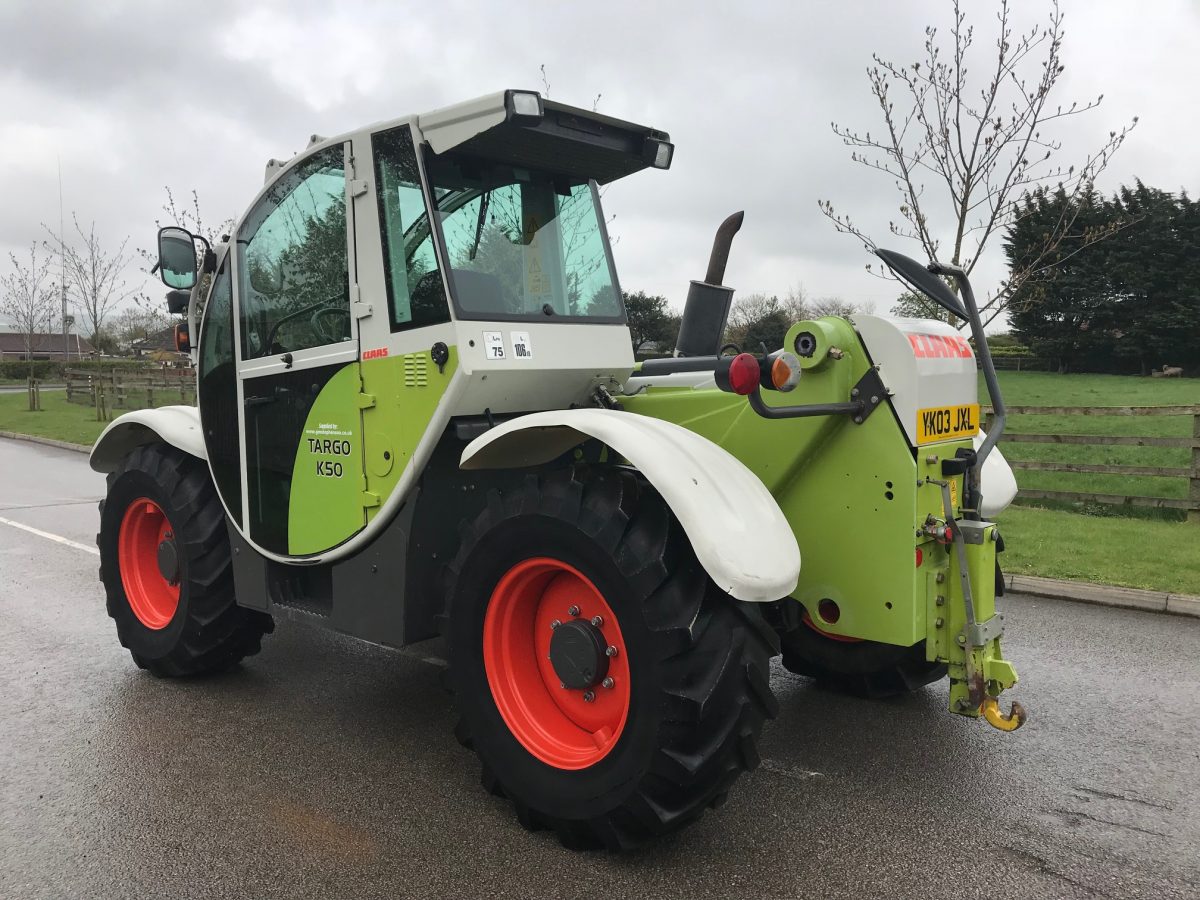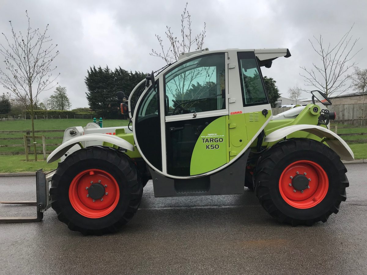 C/W LEFT HAND FORWARD & REVERSE, 5 SPEED (AUTO) TRANSMISSION, PUH, HYDRAULIC TRAILER BRAKE, CLAAS SANDERSON HEADSTOCK, THIRD SERVICE, MANUAL LOCKING PIN, PALLET TINES, AIR CON, 17.5R24 WHEELS & TYRES